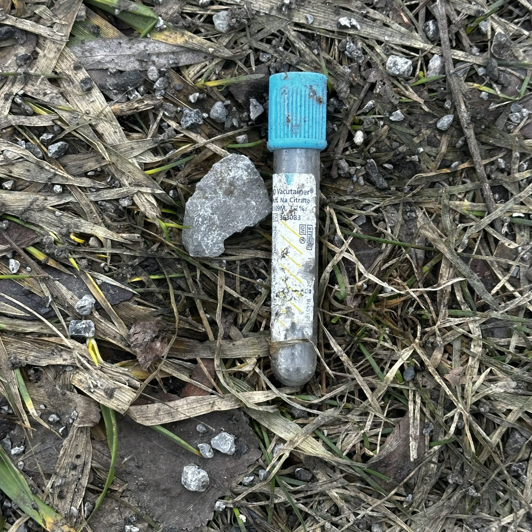 On March 10, 2026, I noticed what appeared to be blood collection tubes scattered across the rear parking lot of 301 Meadow Drive — the Mid City Plaza in North Tonawanda, directly behind the Tops supermarket. The vials were unsealed, mixed into loose debris, and scattered across an area freely accessible to the public. The site sits within direct view of North Tonawanda High School.